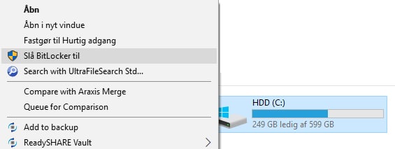 Trin 2: Højreklik på C-drevet og vælg “Slå BitLocker til”