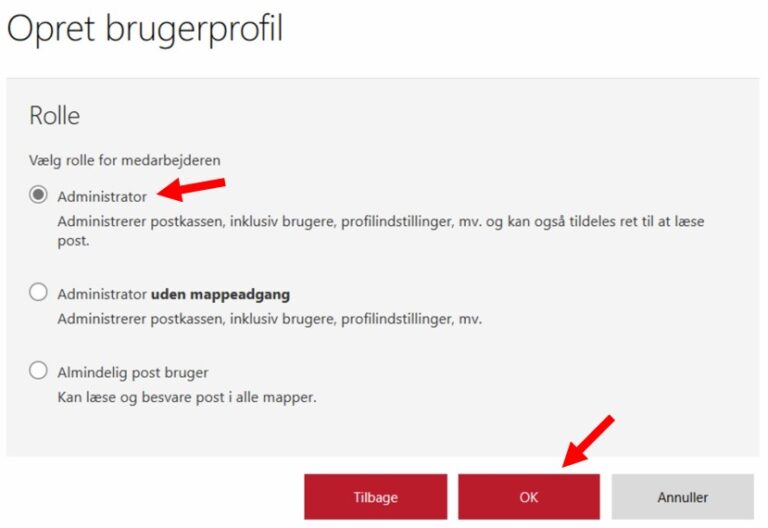 - Giv dig selv rollen som “Administrator” og tryk på knappen “OK” for afslutte